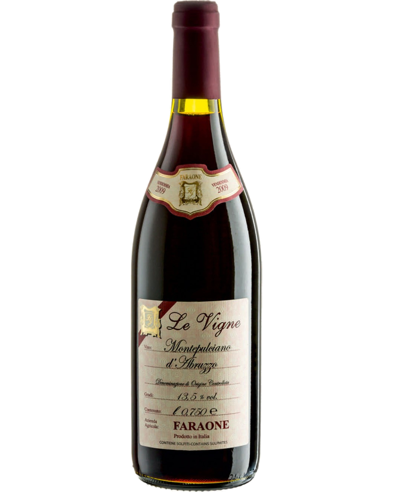 Montepulciano d’Abruzzo della linea “Le Vigne” dell’Azienda Agricola Faraone in Abruzzo. Vin affinato in botte, corposo e speziato.