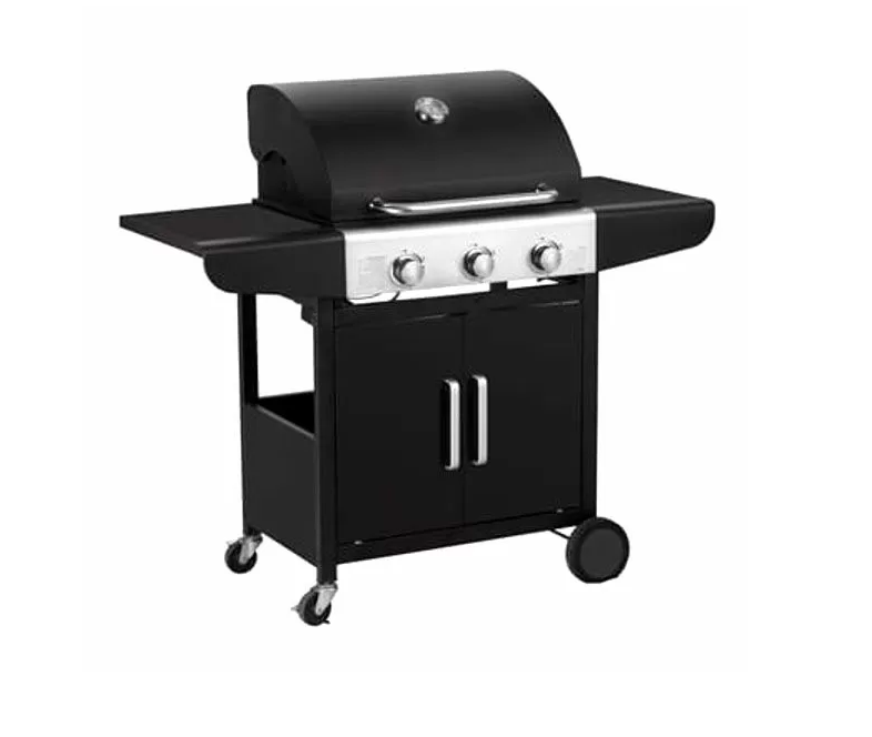 Barbecue a gas 3 bruciatori acciaio inox, Griglia smaltata cm 60x42 - Coperchio e termometro, 2 ripiani laterali - Accensione piezoelettrica, Verniciatura a polveri colore nero, Antine frontali - Vano portautensili, Termocoppie di sicurezza, Vassoio raccolta grassi - Ripiano scaldavivande, 2 ruote unidirezionali + 2 ruote piroettanti. Peso kg 25,0.€199.99Il prezzo originale era: €199.99.€185.99Il prezzo attuale è: €185.99. -