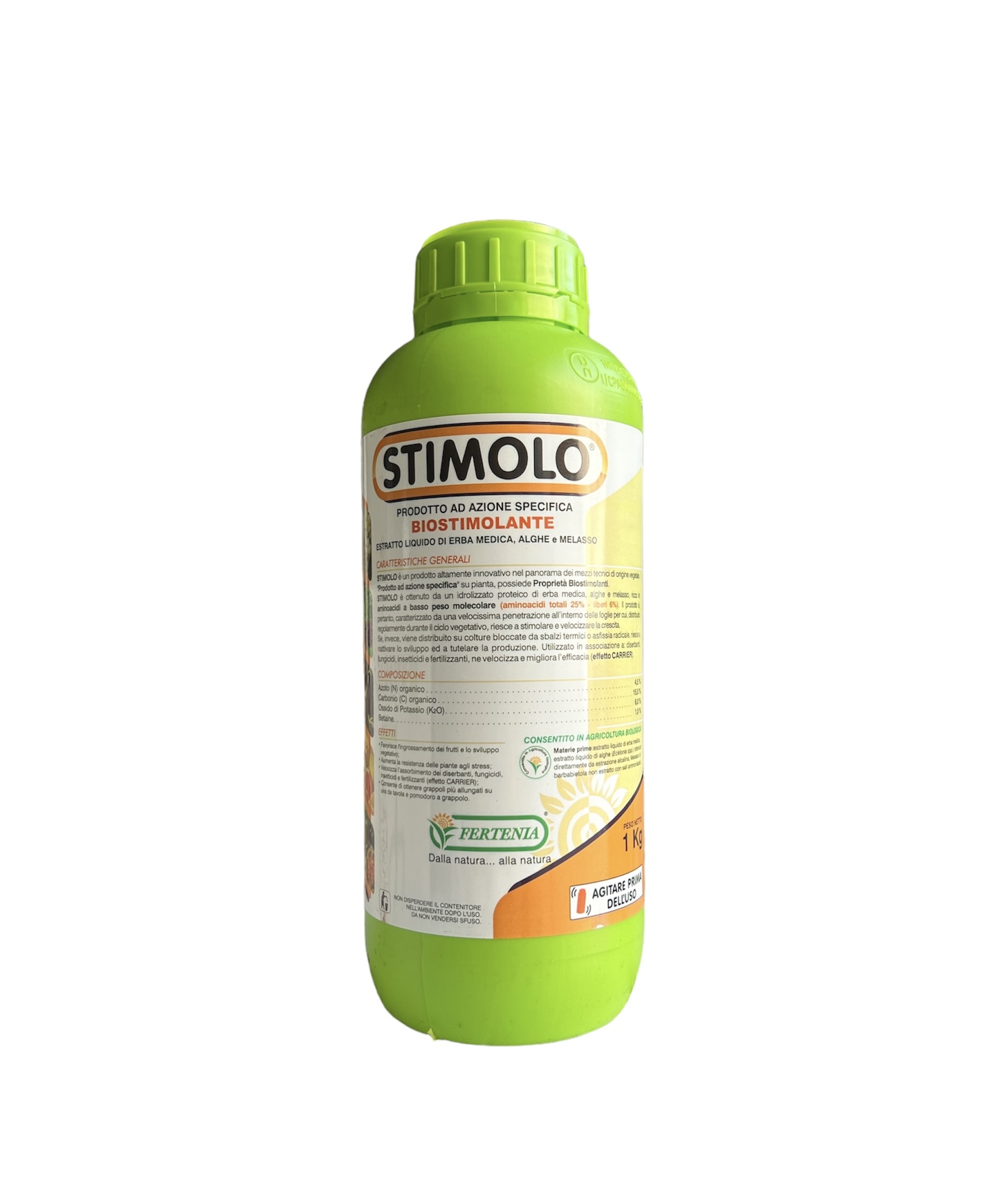 STIMOLO è un prodotto biostimolante di origine vegetale ad azione specifica su pianta e suolo ottenuto da: estratto di erba medica, alghe (Ecklonia spp.) e melasso ricco di aminoacidi a basso peso molecolare, contiene inoltre potassio e betaine. Rispetto ai preparati di origine animale, STIMOLO presenta un maggiore numero di aminoacidi nella forma levogira, l’unica in grado di essere assimilata dalle piante.