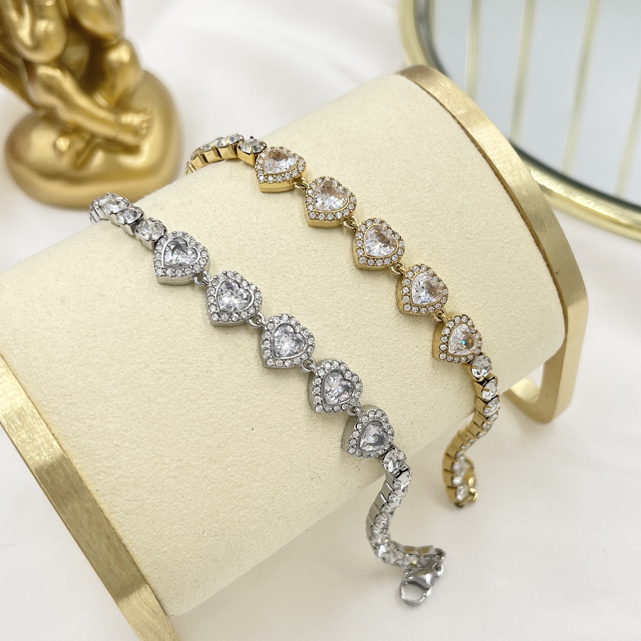 Bracciale Tennis 5 Heart in Acciaio Free Nichel disponibile in gold e silver.