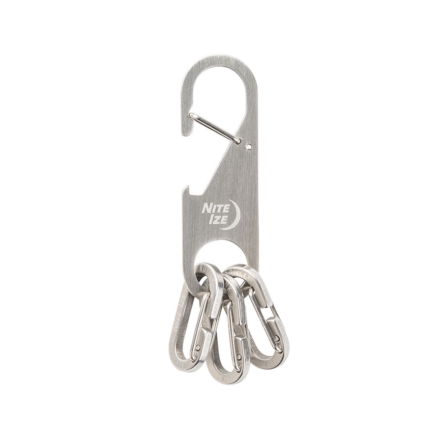 DETTAGLI DEL PRODOTTO Portachiavi in acciaio inossidabile con 3 moschettoni MicroLink attaccati Apribottiglie integrato Il moschettone si aggancia al passante della cintura, allo zaino o alla tracolla della borsa L’apertura stretta e il design del cancello su MicroLink prevengono la perdita della chiave Chiusure sicure per cancelli in filo di acciaio inossidabile Collega, rimuovi e proteggi facilmente le chiavi
