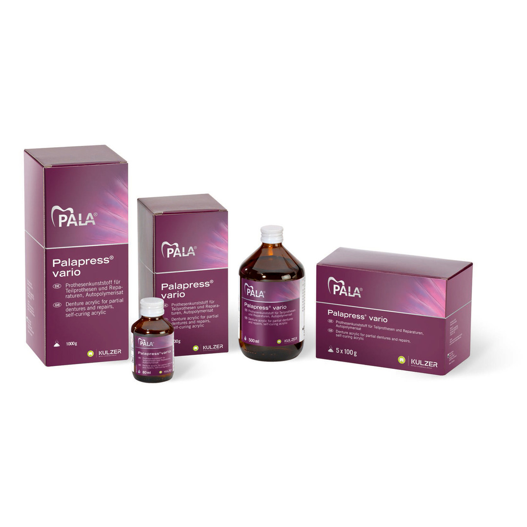 Resina a freddo – ricambio Liquido 500 ml. 64707864 KulzerPalapress VARIO è la scelta giusta per la realizzazione di più selle contrapposte. Il vantaggio di questa resina sta nel processo di polimerizzazione guidato. Grazie ad un tempo di colata fino a 3 minuti, si possono colare contemporaneamente più selle, anche su modelli diversi.