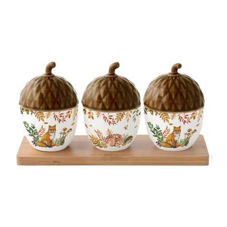 Easy Life · Set 3 Ciotoline Aperitivo in Bamboo “Ghiande” · con Vassoio in Legno · Forest Dream