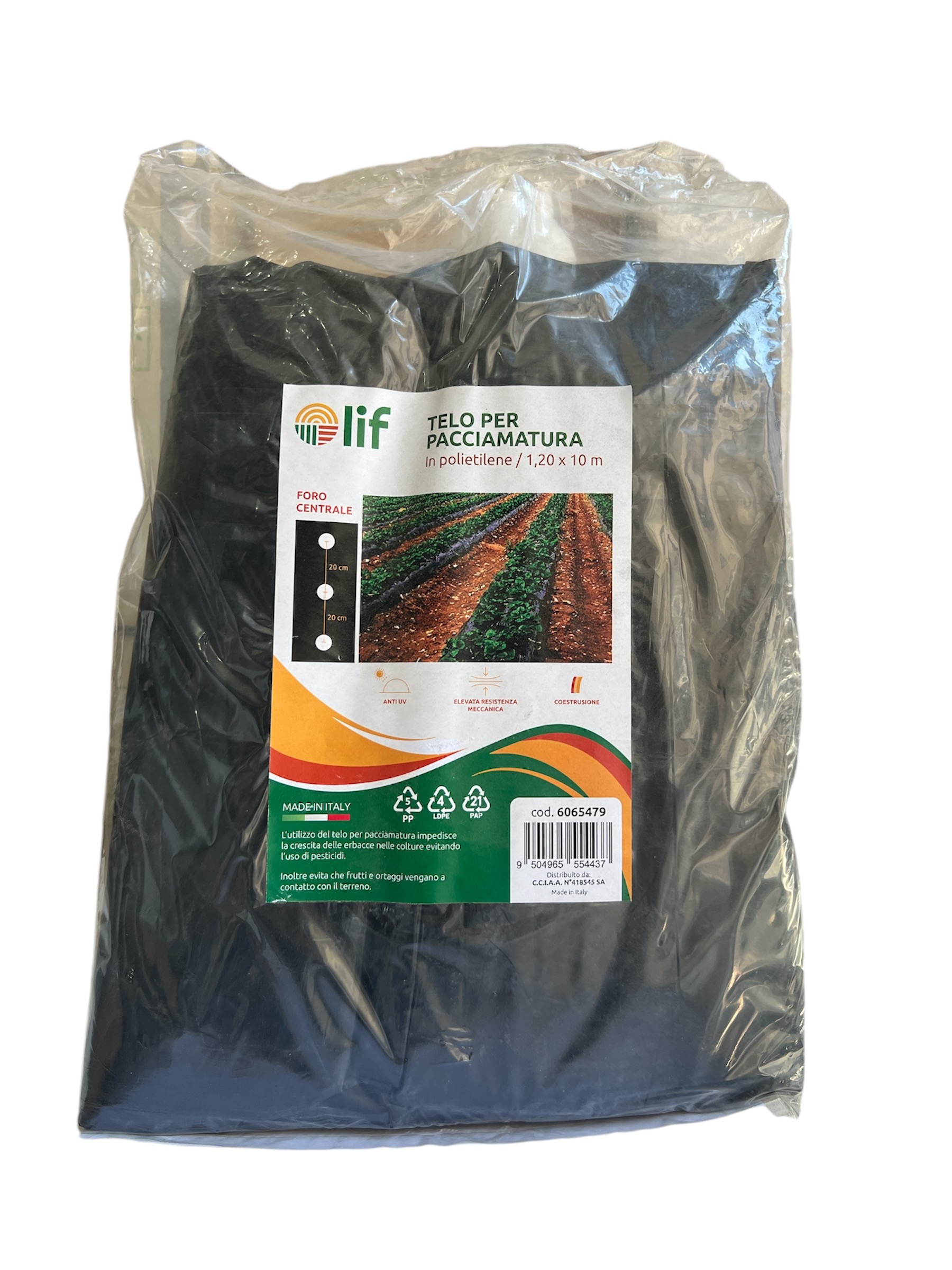 Realizzato in polietilene, è particolarmente adatto per terreni coltivati. Ideale per controllo di erbe infestanti, incremento o riduzione della temperatura e regolazione dei livelli di umidità del suolo, separazione della pianta e del frutto dal terreno. Prodotto in conformità alla norma UNI EN 13655. Spessore 0,05 mm, Ø fori 8 mm. Colore nero. Altezza mt.1,2.