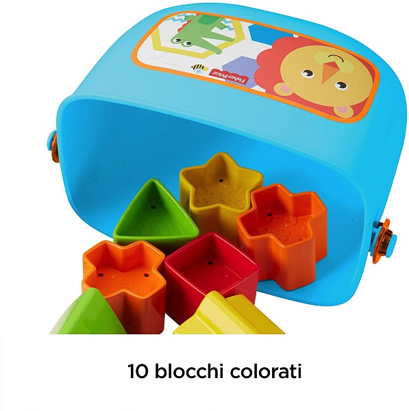 - Gioco di costruzioni per bambini con 10 blocchi assortiti Fisher Price da scegliere, impilare e inserire nel secchiello