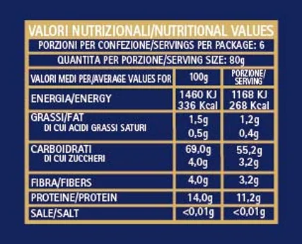 - Ingredienti: semola di grano duro, acqua