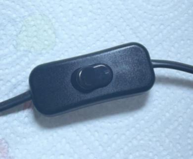 E’ dotata del suo filo da attaccare alla corrente con annesso pulsantino per l’accensione e lo spegnimento.