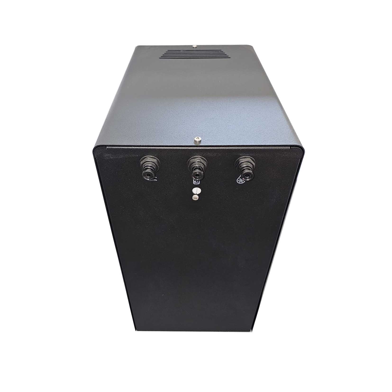 Scocca in Lamiera zincata, verniciata a polvere. Centralina con antiallagamento e regolazione elettronica della temperatura, carbonatore 2,2 litri.